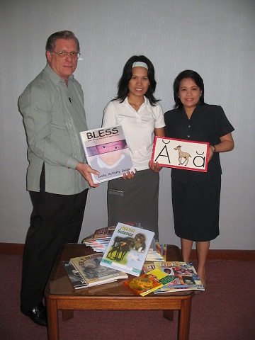 Rev. Delbert Hooge, president of BLESS with Mrs. Weng Kakilala, director, donating a BLESS Kit for a center in Siocon, Zamboanga