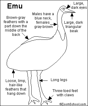 The animal we learned about recently is the world’s second largest bird, Emu. Emu can be found in South-Western Australia. Emy belongs to the flightless birds (ratites). Some of the other flightless birds are Rhea of South America, the Cassowary of Norther Australia and Papua New Guinea and Kiwi of New Zealand. Here is one of the things that we have found over the internet – body parts of an emu.