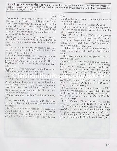 Just to give our dear readers a glimpse of what within the pages of my son’s paces. I got one of the pages that he went over today scanned so I can upload it with this post. It is the story of X-Eddy Ox.