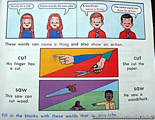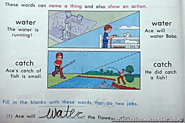 Last week, in our English subject, our homeschooler learned about words that can name a thing and also show an action. Even as our son is already in Level 3, we find that it still helps that his paces have these illustrations to help him understand better. Especially when it comes to telling one from the other.