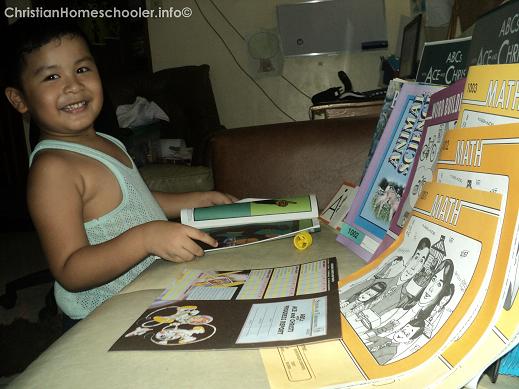 This shot was taken last May 31, 2010, the day before we resumed our homeschool class. This little guy was so eager he wanted to start right there and then. But we agreed to start the day after instead. Because it was already late in the afternoon when we browsed through his homeschool materials.