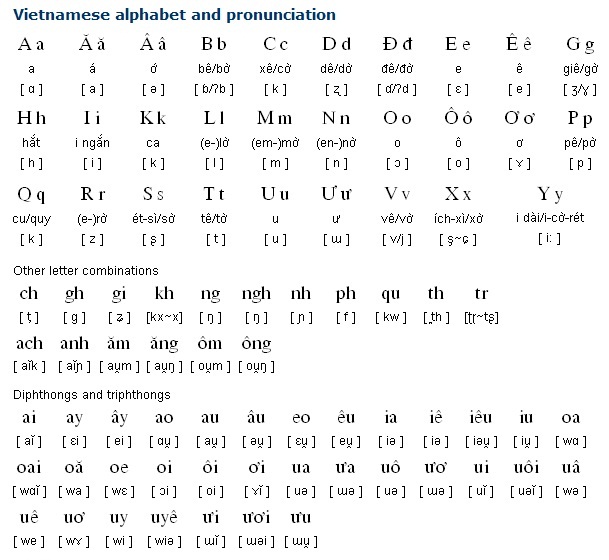 - D and GI = [z] in the northern dialects (including Hanoi), and [j] in the central, southern and Saigon dialects.