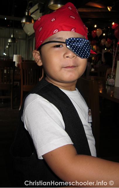 No doubt that it is a bunch easier to shop for coogi clothings these days. But not so much for themes such as “pirates.” What we did was just grab a hold of a regular black vest and bandana. Jed’s Uncle Ted made him an eye patch of sorts and that was it. It somehow allowed us to be more creative. 🙂
